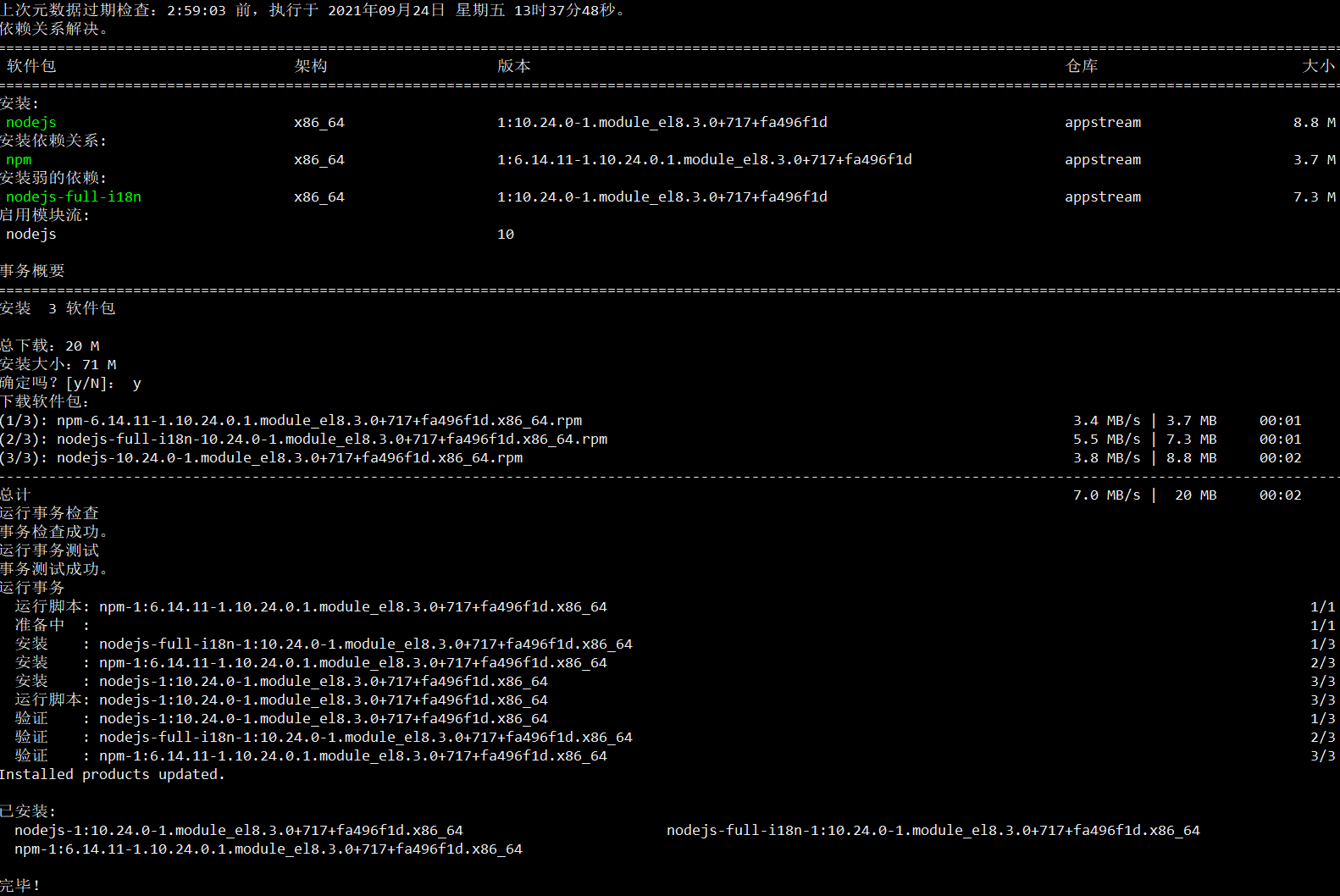 可以看到当前系统支持的node版本是10.24.0,执行安装命令: