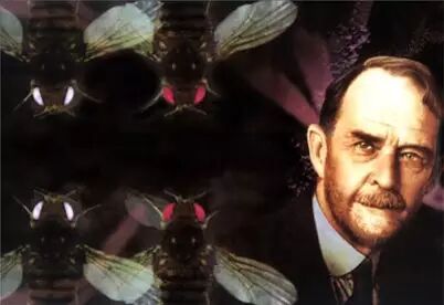 摩尔根(1866-1945)与果蝇偶然的机会,他得到一只白眼雄性突变果蝇,与红眼雌性果蝇交配后,子一代都是红眼果蝇,按照孟德尔的学说,红眼基因相对白眼基因是显性,他用第一代杂交果蝇互相交配,产生第二代杂交果蝇。此中有3470个红眼的,782个白眼的,基本符合3:1的比例。